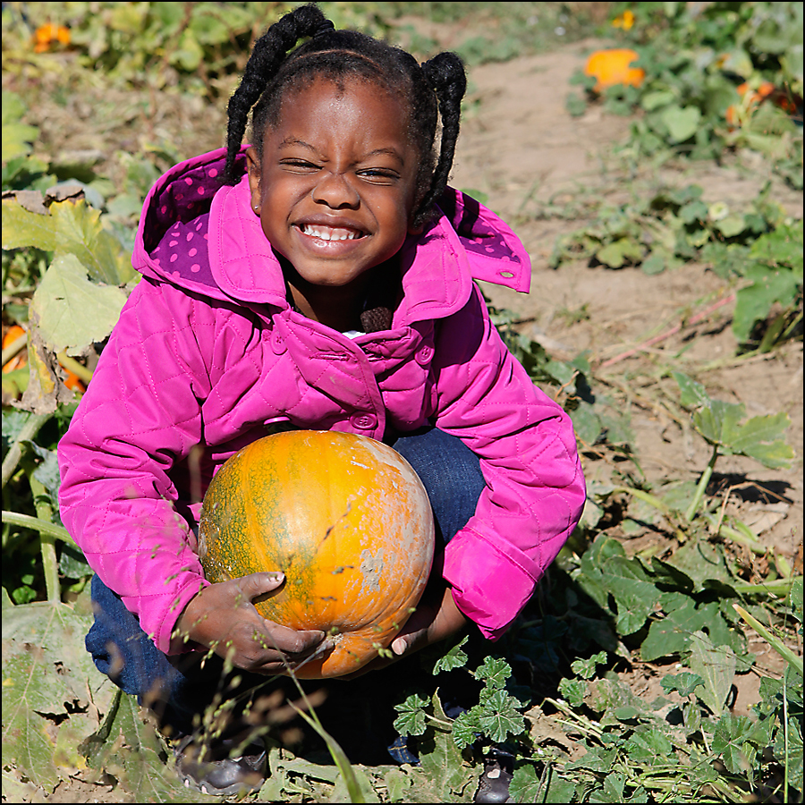 she picked up several pumpkins and carried them around before she decided on this very special one. she was very proud of it. (as you can plainly see) we had a great time picking out the perfect pumpkins for halloween!